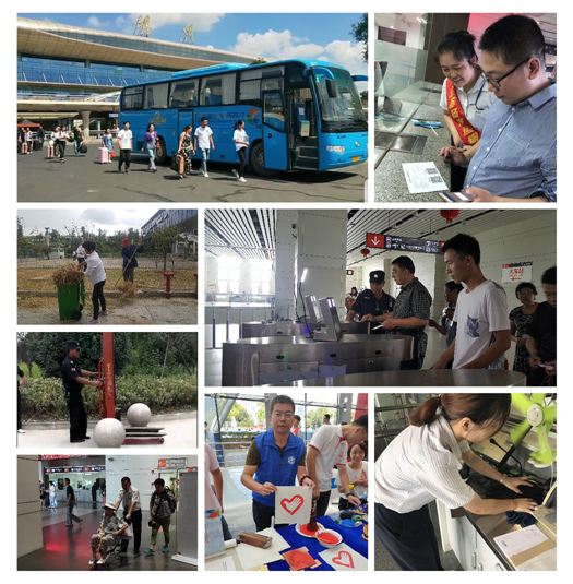 車站各班組分工協(xié)作打掃各自責(zé)任區(qū)域,清掃工作臺(tái)、參加"志愿服務(wù) 美好你我他"第三屆江蘇志愿服務(wù)展示交流活動(dòng)、清掃路邊綠化帶、噴灑藥水、除雜草滅蟲害、整理通道入口、設(shè)備設(shè)施維護(hù)、消防安全檢查、身份實(shí)名驗(yàn)證、檢查危險(xiǎn)禁運(yùn)物品、檢查客車安全帶、為特殊旅客提供一站式服務(wù)、熱情引導(dǎo)購票、候車,征詢旅客意見、開展問卷調(diào)查,以整潔的站區(qū)環(huán)境、良好的精神風(fēng)貌和優(yōu)質(zhì)的候乘服務(wù)當(dāng)好東道主,文明迎盛會(huì)。