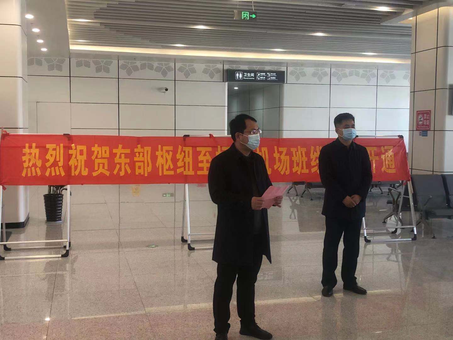 在東部樞紐交通中心現(xiàn)場,舉行了簡短的開通儀式,交通產(chǎn)業(yè)集團(tuán)副總經(jīng)理、揚(yáng)汽集團(tuán)黨委書記、董事長龔宇峰和揚(yáng)州泰州國際機(jī)場副總經(jīng)理徐長富出席了班線開通儀式。龔宇峰董事長在致辭中表示,在西站、東站和東部樞紐設(shè)立揚(yáng)泰機(jī)場候機(jī)樓,是認(rèn)真落實(shí)市委市政府《關(guān)于做好2020年民生幸福工程的通知》文件精神的重要工程,是滿足人民多層次多樣化民生需求,不斷提升城市客運(yùn)接駁換乘水平的重要舉措。隨著東站和東部樞紐候機(jī)樓的設(shè)立以及機(jī)場班線的開通,揚(yáng)泰機(jī)場在市區(qū)的客運(yùn)服務(wù)網(wǎng)絡(luò)基本形成,高鐵和機(jī)場的零距離換乘成為現(xiàn)實(shí),機(jī)場與城市的距離將被進(jìn)一步拉近。