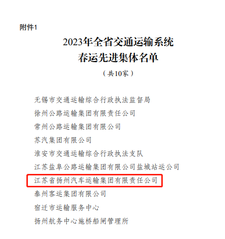 揚(yáng)汽集團(tuán)榮獲“省交通運(yùn)輸系統(tǒng)春運(yùn)先進(jìn)集體”稱號(hào)